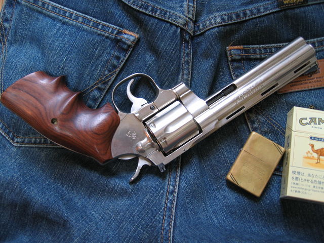 この記事を書いたのち、このパイソンはヤフオクで売ってしまった。この記事を久しぶりに読んでちょっと惜しい気持ちになってしまった。現在では、内部構造まで含めてタナカ製のパイソンが最高品質だと思う。さらにマルイのパイソンもディフォルメはあるが、それなりにスタイルは良いと思う。