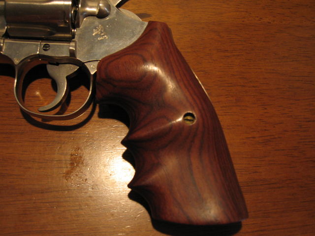 最近のモデルでは改良されているのでリバウンドレバーのみ購入。グリップは実銃のフィンガーチャンネル付きローズウッドグリップを購入。カスタムと呼べるほどではないけど、リバウンドレバーを最新のものに付け替え、木製グリップを装着して保管してある。